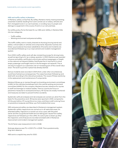 From 2020, traffic safety work will also include the process for driving trains, as well as reporting to SJ as a railway operator. In 2019, Mantena was awarded a licence and safety certificate to drive trains without passengers or freight on the national rail network (Safety Certificate Part A and Part B, to drive empty passenger and freight trains on the Norwegian rail network). This is one way to support our customers over an increasing part of the overall value chain. The work to put this in place has already started.