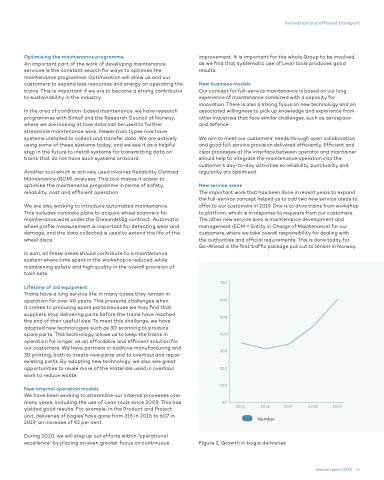 We have been working to streamline our internal processes over many years, including the use of Lean tools since 2009. This has yielded good results. For example, in the Product and Project unit, deliveries of bogies have gone from 316 in 2016 to 607 in 2019, an increase of 92 per cent.