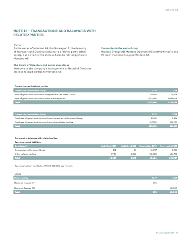 As the owner of Mantena AS, the Norwegian State (Ministry of Transport and Communications) is a related party. Other enterprises owned by the state will also be related parties to Mantena AS.