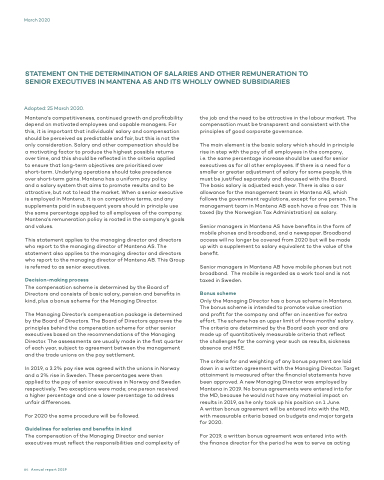 STATEMENT ON THE DETERMINATION OF SALARIES AND OTHER REMUNERATION TO SENIOR EXECUTIVES IN MANTENA AS AND ITS WHOLLY OWNED SUBSIDIARIES