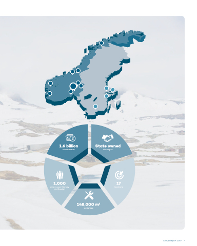 1.6 billion NOK turnover 1,000 employees in Norway and Sweden State owned Norwegian 17 locations 148,000 m2 workshops Annual report 2019 7