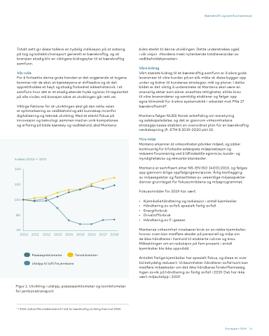 Figur 1. Utvikling i utslipp, passasjerkilometer og tonnkilometer for jernbanetransport