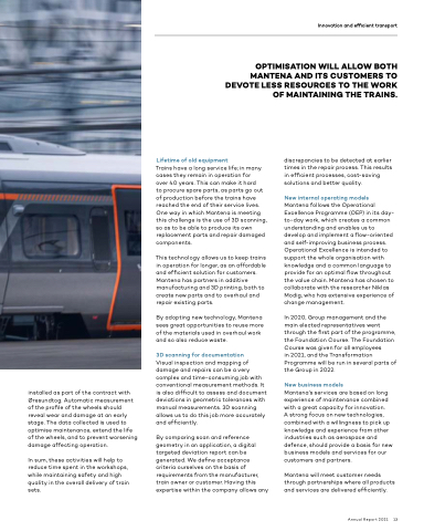 to procure spare parts, as parts go out of production before the trains have reached the end of their service lives. One way in which Mantena is meeting this challenge is the use of 3D scanning, so as to be able to produce its own replacement parts and repair damaged components.