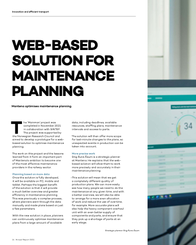the Norwegian Research Council and aimed to develop a prototype for a web- based solution to optimise maintenance planning.