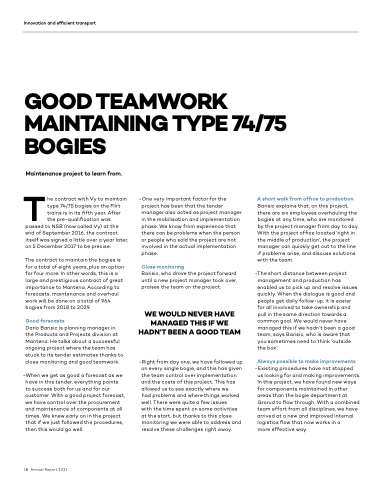 Barisic explains that, on this project, there are six employees overhauling the bogies at any time, who are monitored by the project manager from day to day. With the project office located ‘right in the middle of production’, the project manager can quickly get out to the line if problems arise, and discuss solutions with the team.