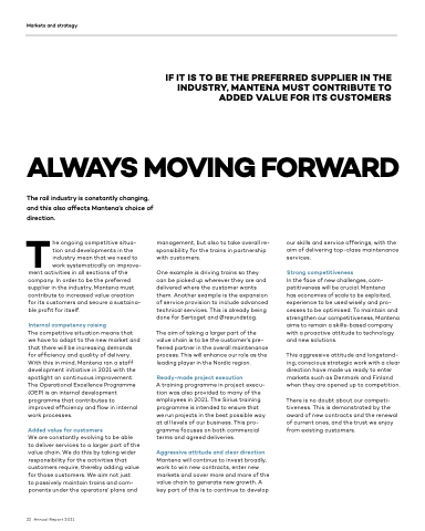ment activities in all sections of the company. In order to be the preferred supplier in the industry, Mantena must contribute to increased value creation for its customers and secure a sustaina- ble profit for itself.