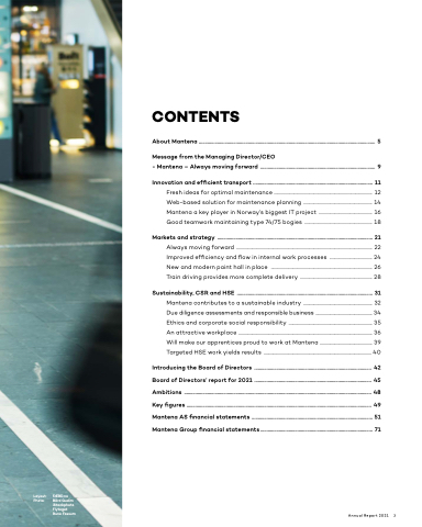 Always moving forward .................................................................................................................................. 22 Improved efficiency and flow in internal work processes ......................................... 24 New and modern paint hall in place ................................................................................................. 26 Train driving provides more complete delivery ..................................................................... 28