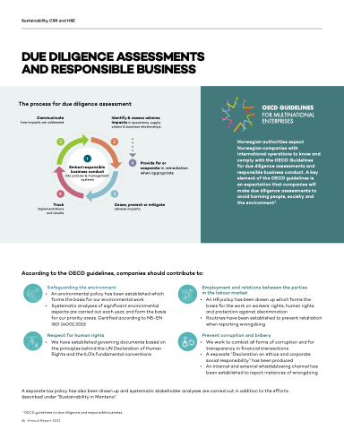 Norwegian authorities expect Norwegian companies with international operations to know and comply with the OECD Guidelines for due diligence assessments and responsible business conduct. A key element of the OECD guidelines is an expectation that companies will make due diligence assessments to avoid harming people, society and the environment2.