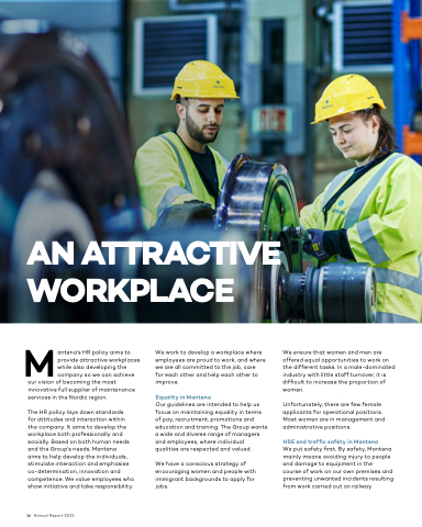 Mantena’s HR policy aims to We work to develop a workplace where We ensure that women and men are