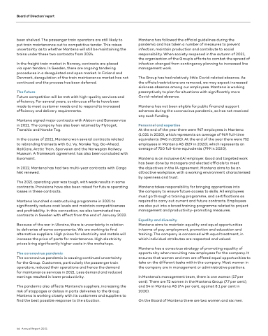 The coronavirus pandemic is causing continued uncertainty for the Group. Customers, particularly the passenger train operators, reduced their operations and hence the demand for maintenance services in 2021. Less demand and reduced earnings resulted in lower productivity.