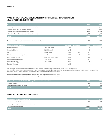 NOTE 2 - PAYROLL COSTS, NUMBER OF EMPLOYEES, REMUNERATION, LOANS TO EMPLOYEES ETC.