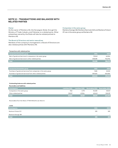 As the owner of Mantena AS, the Norwegian State, through the Ministry of Trade, Industry and Fisheries, is a related party. Other enterprises owned by the State will also be related parties to Mantena AS.