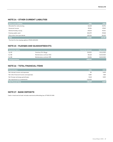 Cash in hand and at bank includes restricted withholding tax of TNOK 21 508.