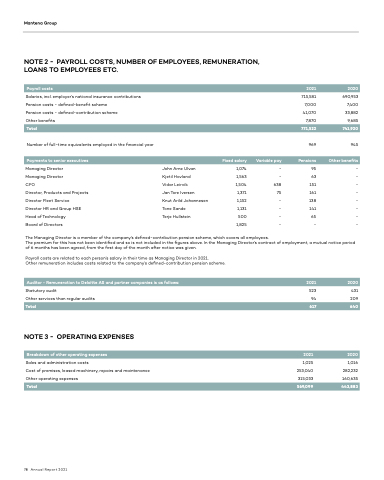 NOTE 2 - PAYROLL COSTS, NUMBER OF EMPLOYEES, REMUNERATION, LOANS TO EMPLOYEES ETC.