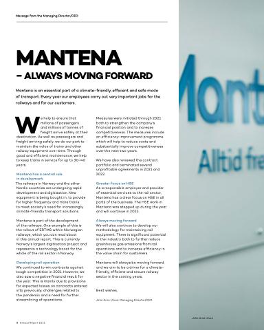 Mantena will always be moving forward, and we aim to be a driver for a climate- friendly, efficient and secure railway sector in the coming years.