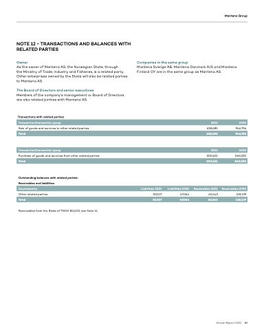 the Ministry of Trade, Industry and Fisheries, is a related party. Other enterprises owned by the State will also be related parties to Mantena AS.