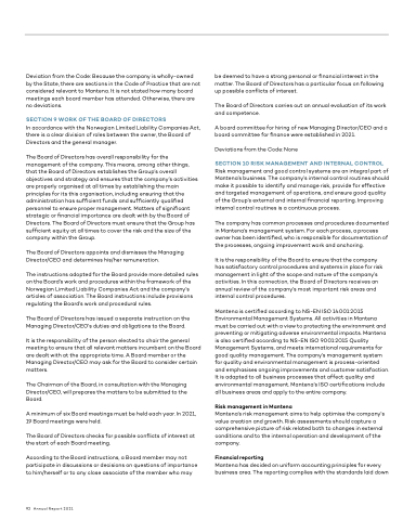 Deviation from the Code: Because the company is wholly-owned by the State, there are sections in the Code of Practice that are not considered relevant to Mantena. It is not stated how many board meetings each board member has attended. Otherwise, there are no deviations.