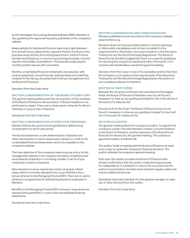 or other public marketplace and is thus not subject to the requirements for information and communication in the Securities Trading Act and the Stock Exchange Regulations. The Board of Directors has therefore judged that there is no need for guidelines for reporting the company’s results and other information or for contact with shareholders outside the general meeting.