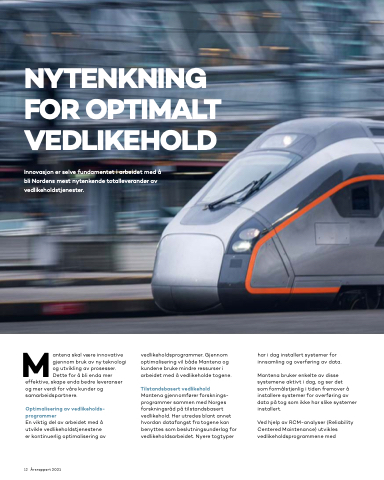 optimalisering vil både Mantena og kundene bruke mindre ressurser i arbeidet med å vedlikeholde togene.