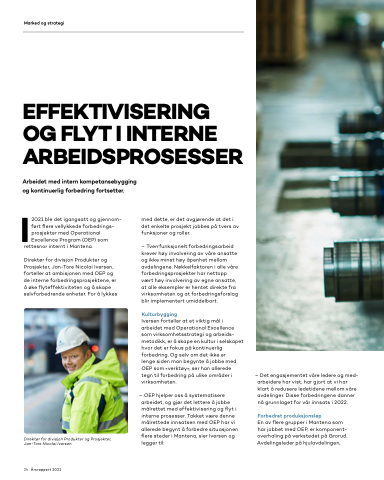 I2021 ble det igangsatt og gjennom- ført flere vellykkede forbedrings- prosjekter med Operational Excellence Program (OEP) som
