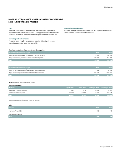 NOTE 12 - TRANSAKSJONER OG MELLOMVÆRENDE MED NÆRSTÅENDE PARTER