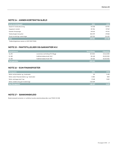 NOTE 14 - ANNEN KORTSIKTIG GJELD