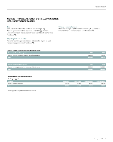 NOTE 12 - TRANSAKSJONER OG MELLOMVÆRENDE MED NÆRSTÅENDE PARTER