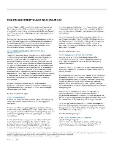 Mantena AS som er 100 prosent eid av staten ved Nærings- og fiskeridepartementet, følger den til enhver tid gjeldende norske anbefaling for eierstyring og selskapsledelse (NUES-anbefalingen) innenfor de rammer og med de begrensninger organisasjonsform og eierskap setter.