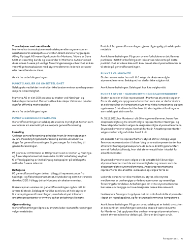 På generalforsamlingen deltar, i tillegg til representanter fra Nærings- og fiskeridepartementet, styreleder og administrerende direktør/CEO. I tillegg deltar Mantena sin eksterne revisor.